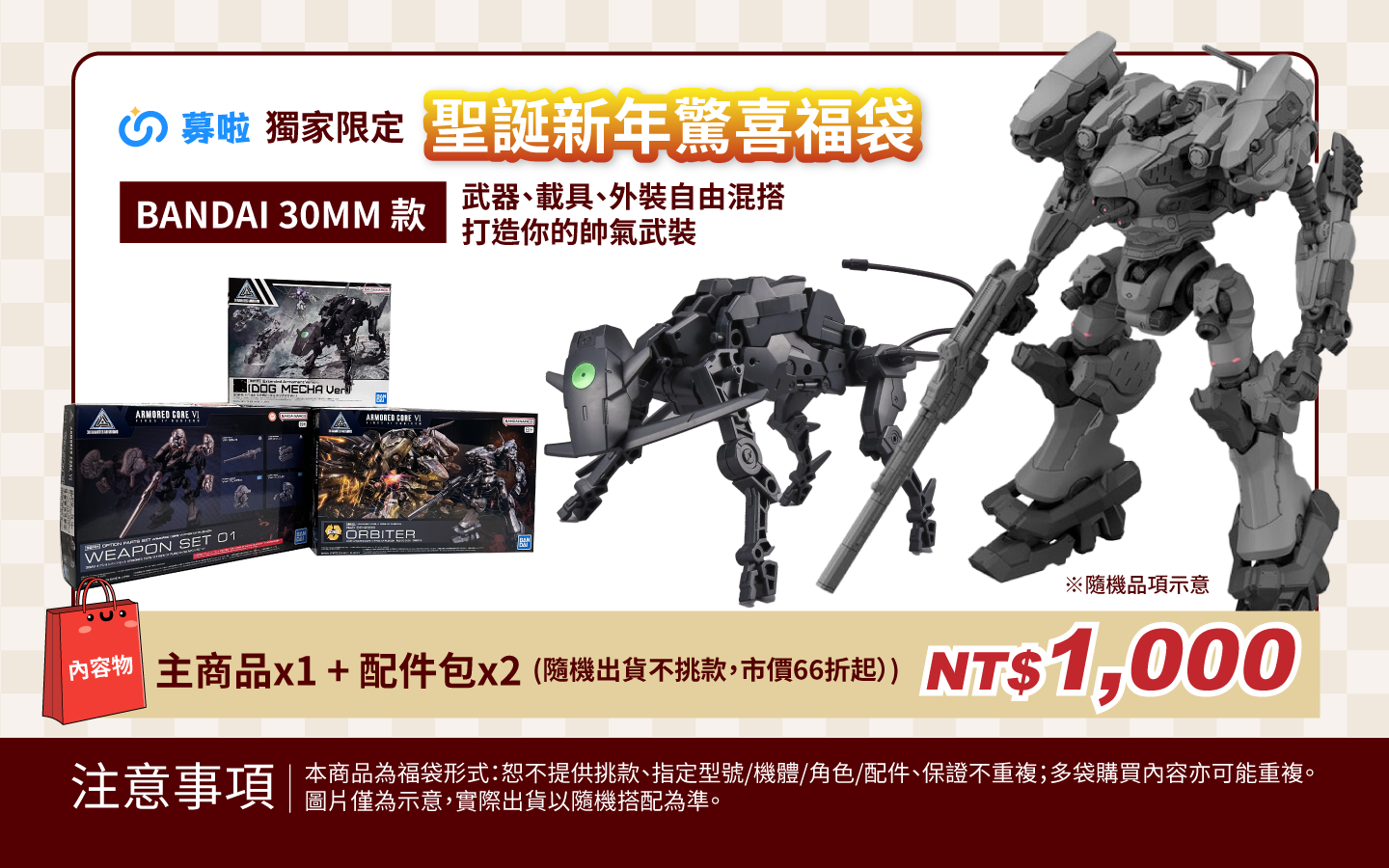 【募啦獨家限定】BANDAI 30MM 聖誕新年驚喜福袋|主機體×1+擴充配件×2 隨機出貨(市價66折起)