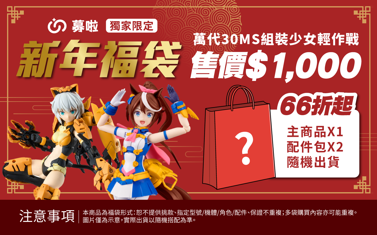 【募啦獨家限定】BANDAI 30MS組裝少女輕作戰-新年驚喜福袋 |主商品×1+配件包×2 隨機出貨(市價66折起)