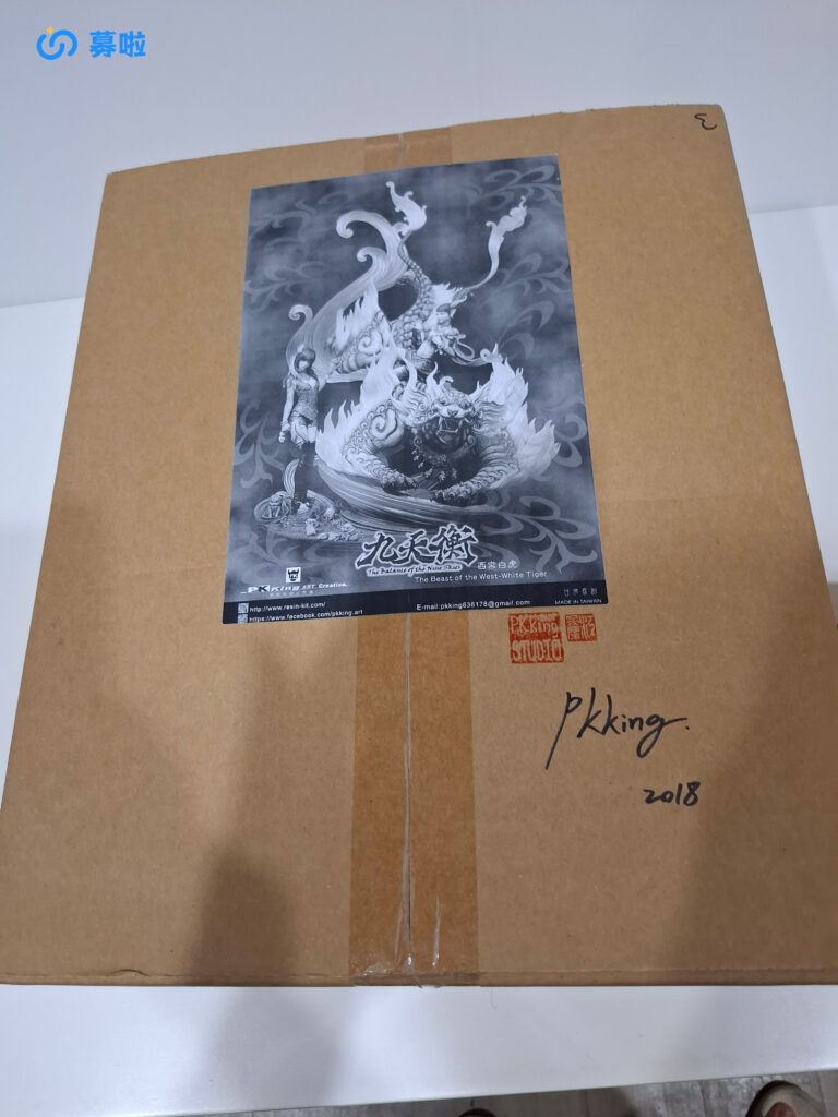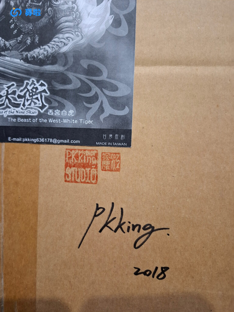 近看可以看到紅印章「PKKing Studio」與親筆簽名,這樣的細節讓整個包裝多了份收藏價值。不只是模型,更像是一件雕塑作品,從外盒就開始說故事。