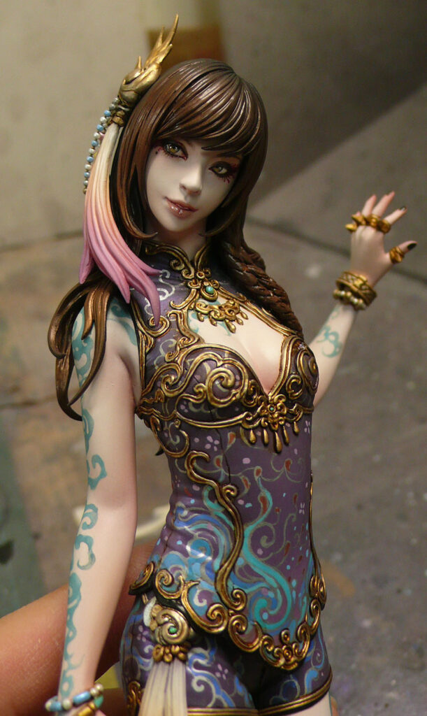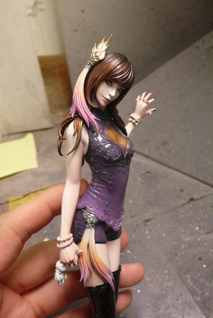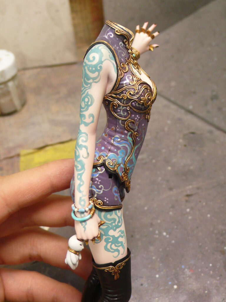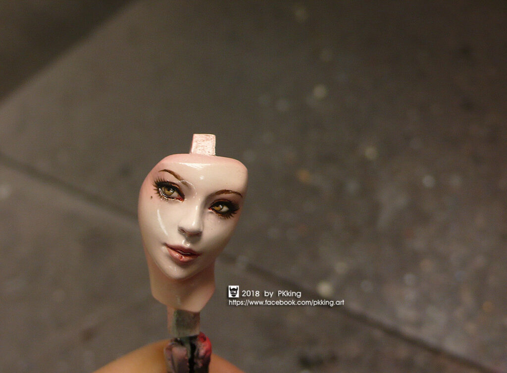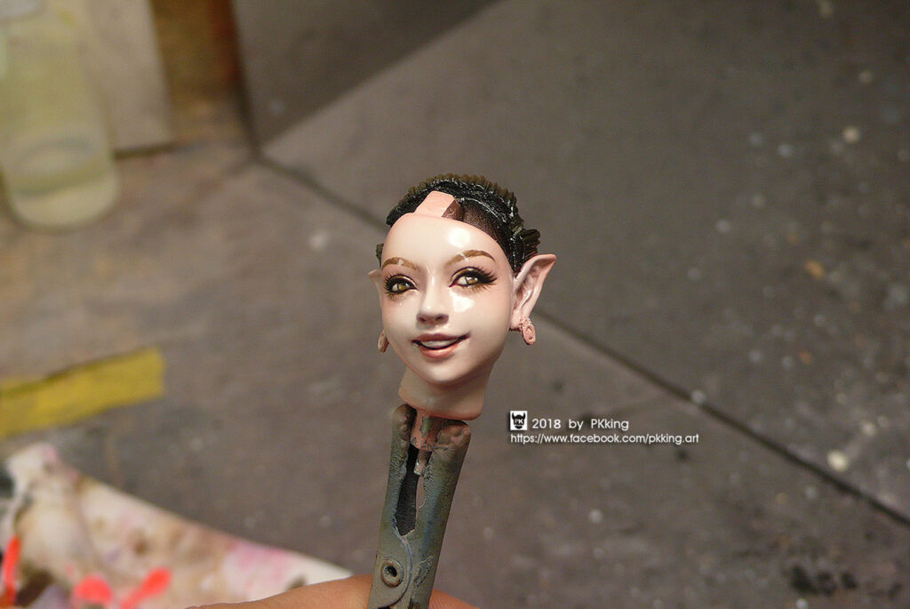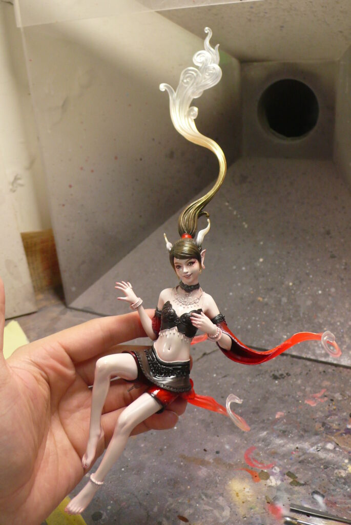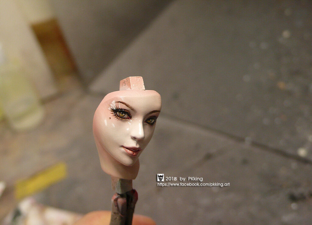 睫毛線條細到幾乎讓人不敢呼吸,每次筆尖觸碰都得屏氣凝神。這種樹脂臉部的上色,真的不是玩具,是純藝術品。