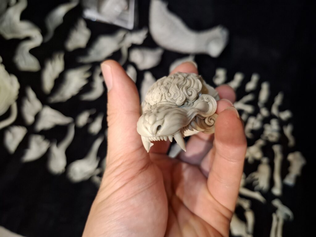 這顆頭雕是我最期待的部位之一。從鬃毛、皺眉到暴露出的獠牙,都展現了猛獸的張力。翻模非常乾淨,連眼神都能感受到情緒。