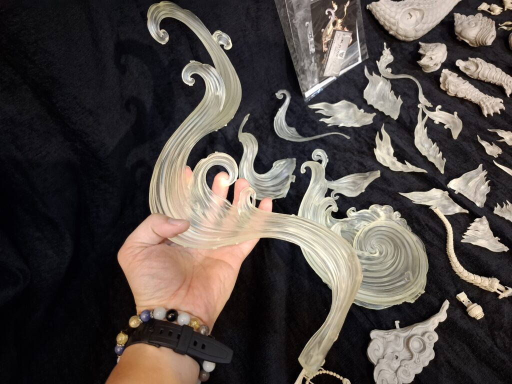 這個透明樹脂火焰特效真的太美。握在手中可以感受到它的流動線條,每個轉折都呼應著主角氣場的爆發。這組件就是為了畫龍點睛而生的存在。