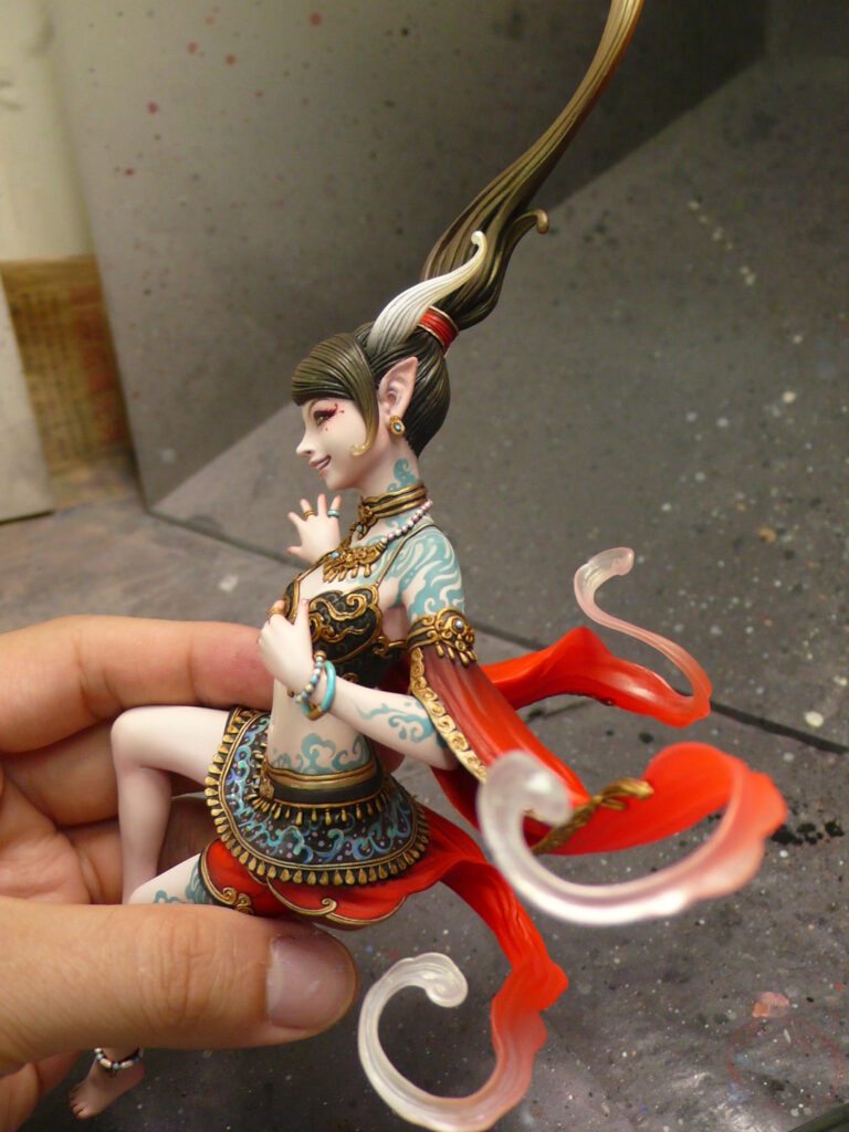 最終組裝後,角色彷彿活過來了。從眼神、服裝到飄帶與坐姿,完全讓人捨不得移開視線。這不只是「上完色」,而是創造出屬於自己的神話場景。