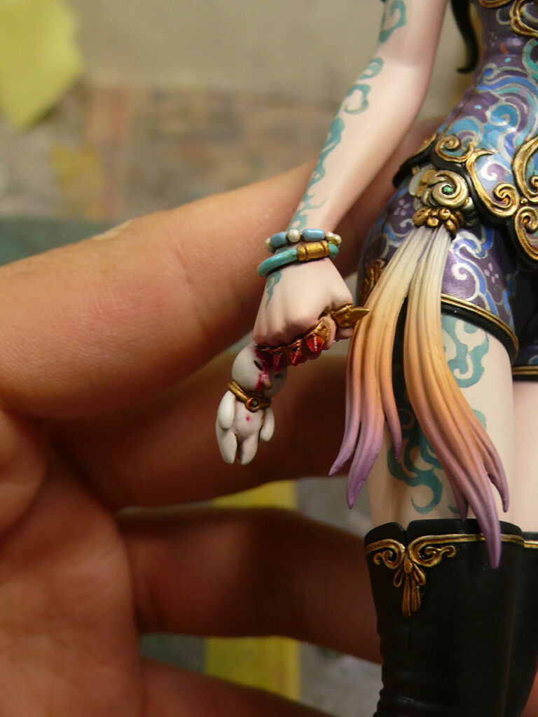 從細緻的手指姿態,到手上小巧的兔兔吊飾,這種角色上的微妙反差,讓整體性格更立體。原以為這類配件只是裝飾,但上完色後卻變成了一個「情緒亮點」。