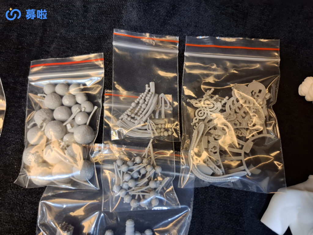 打開包裝盒,泡泡紙包得非常緊實,每一包零件都用夾鏈袋分好,不容易在運送過程中撞壞。這樣的細心對模型玩家來說真的很加分,能明顯感受到工作室對收藏者的尊重與貼心。