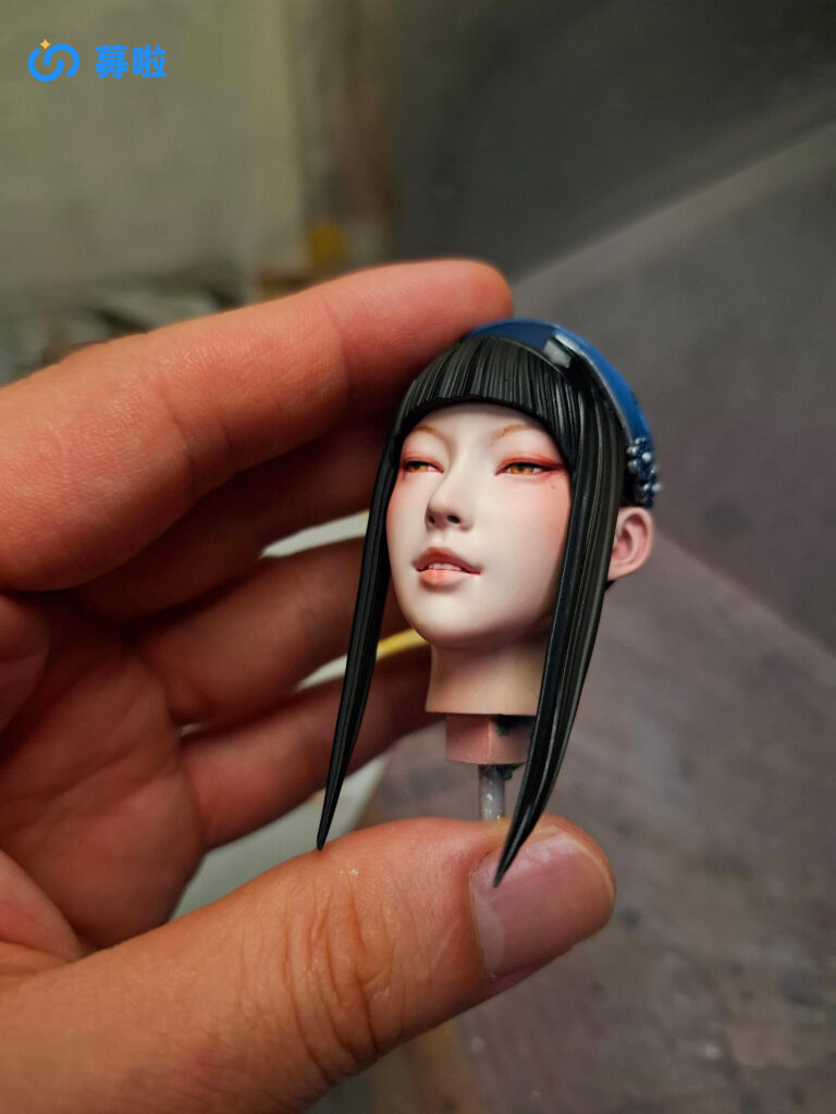 臉部的細節塗裝非常高水準。眼影與腮紅位置的漸層過渡自然,睫毛也一根根細緻表現。頭髮上的光澤線條與髮飾的色調搭配,讓角色既有傳統古典感,也不失現代的審美風格。