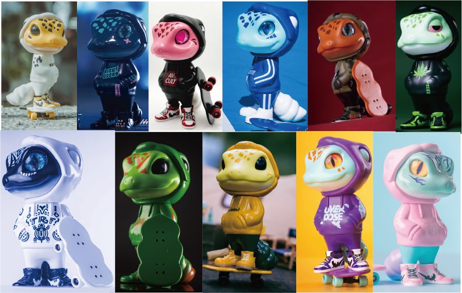 街頭守宮【SIPPO】是由玩具設計師「春人」創作的原創角色。靈感源自網路迷因中「蛻皮到一半」的守宮,那宛如穿著潮流帽 T 的獨特身影,翻轉了生物本能,賦予其全新的街頭精神。