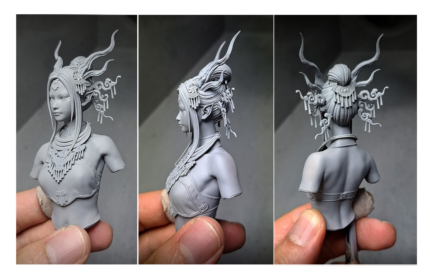 在九淵龍母的造型中,有許多 傳統翻模技術無法處理的纖細結構:超細微的頭飾、項鍊等細小零件