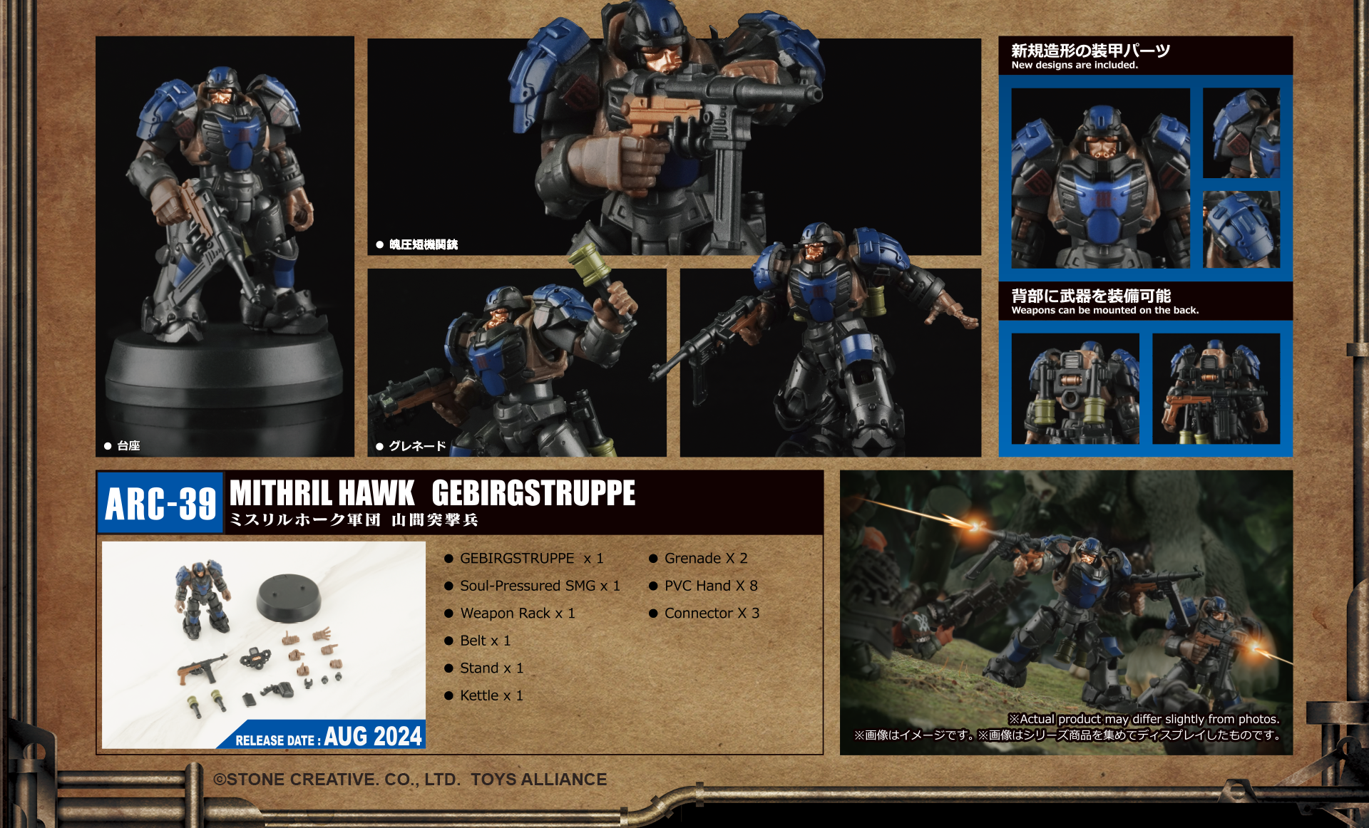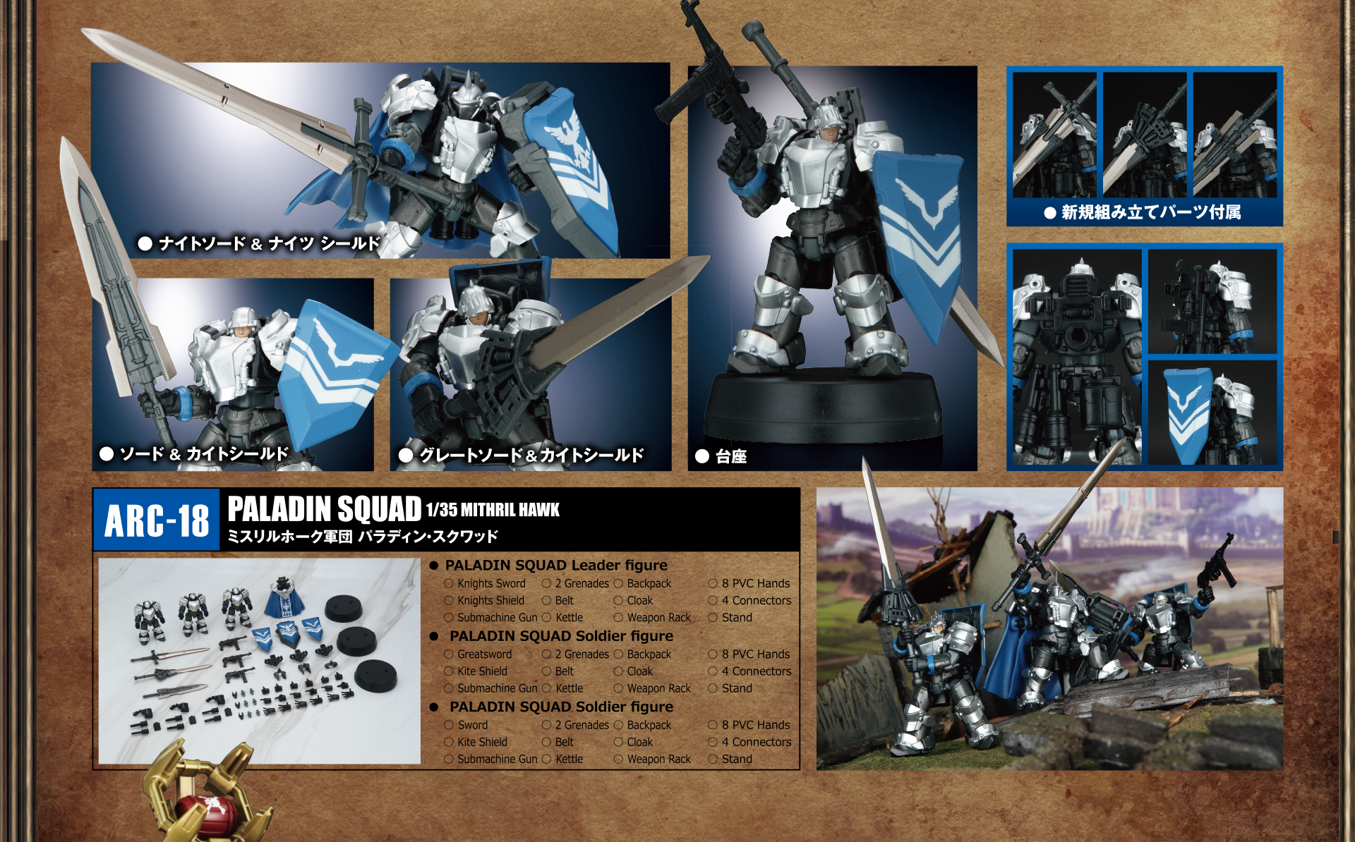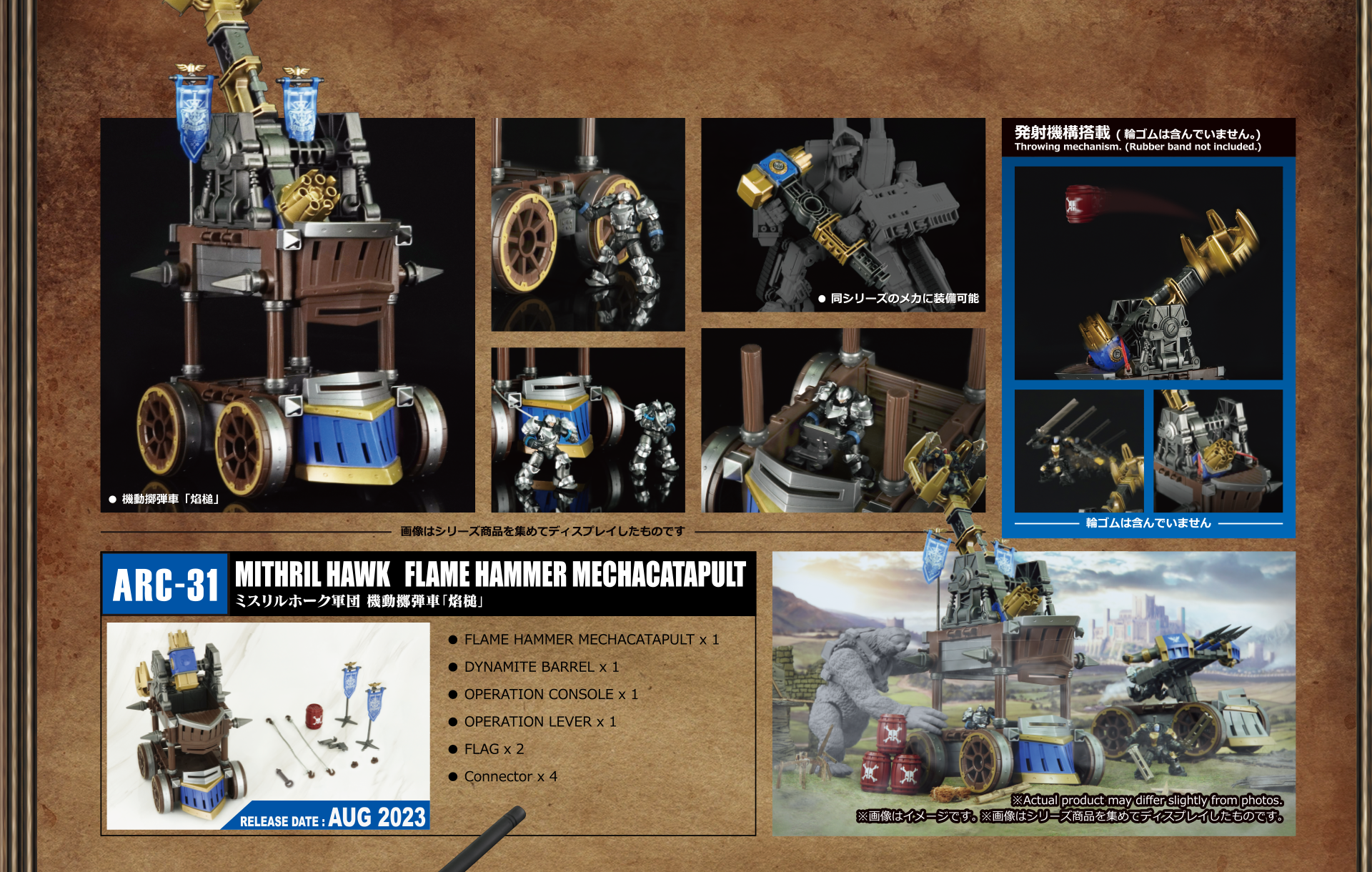 本系列商品以1/35比例的可動人偶為主軸,搭配巨大人形兵器、建築基地、搭乘載具、場景配件等產品,忠實呈現有如微縮模型般的王國世界,讓您親身參與這場史詩般的戰役。