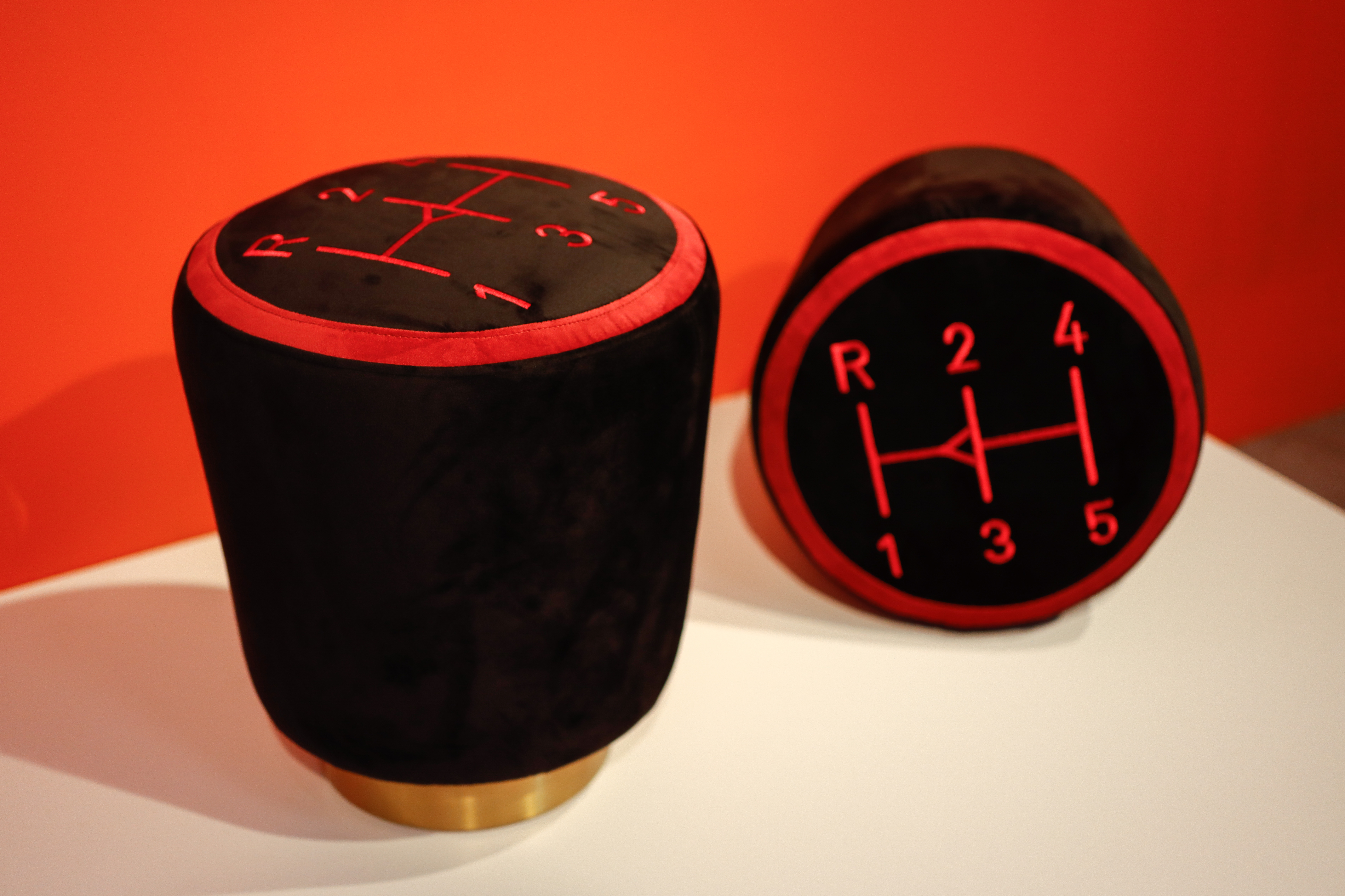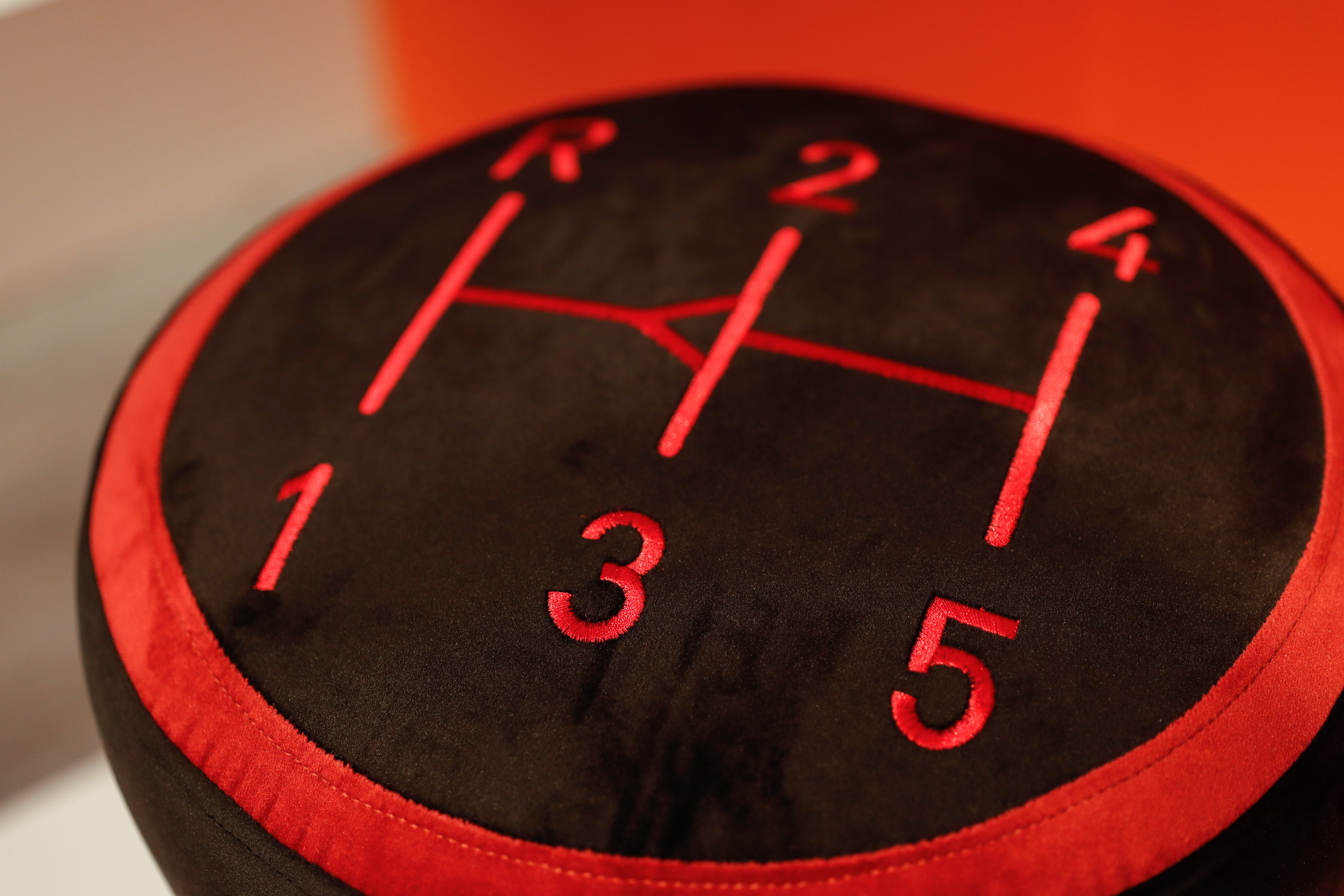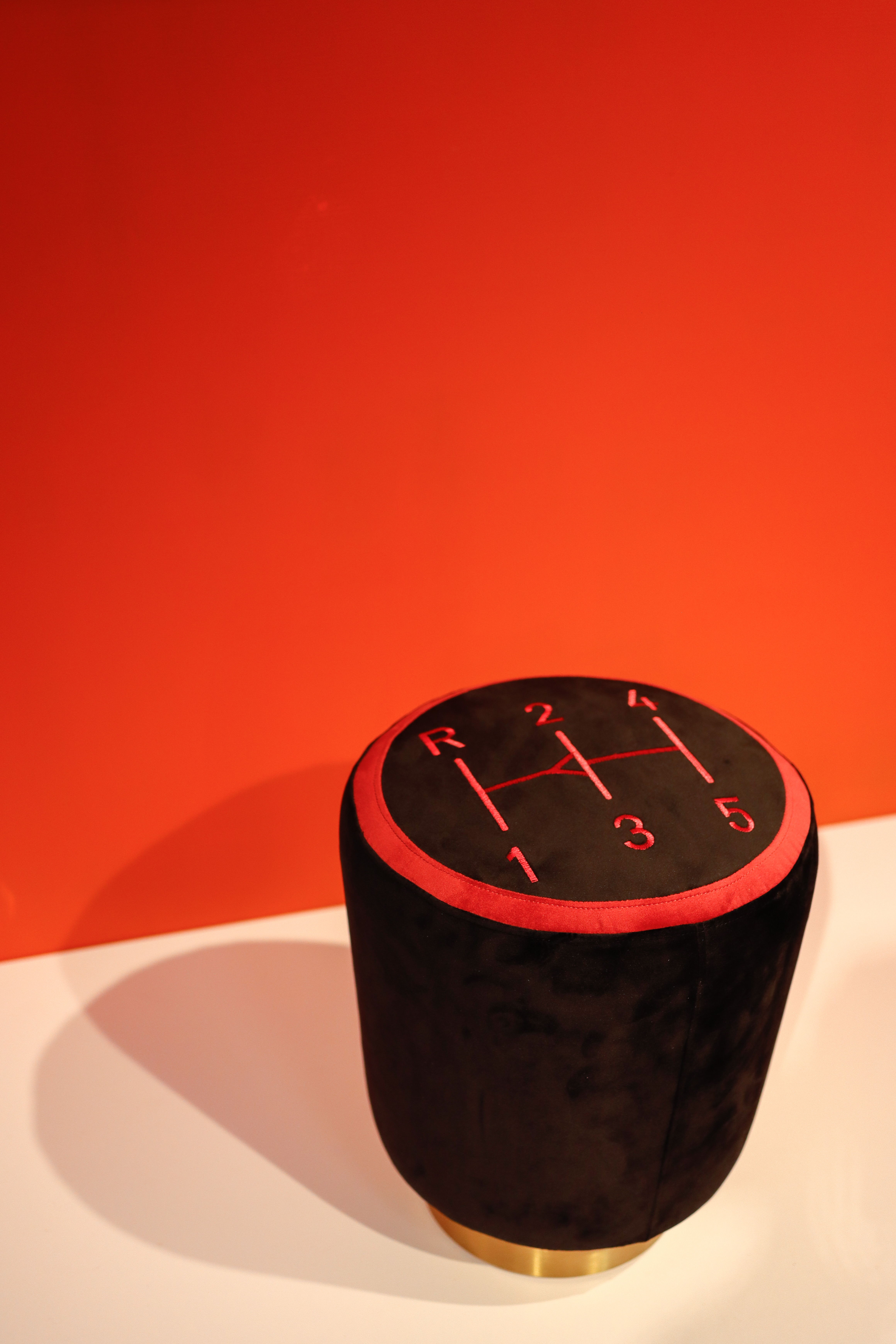 其獨特之處在於將一手可握的排檔桿放大,經典的排檔頭造型與繡有古董車排擋的圖樣,完美的造型與比例令人不禁聯想到汽車駕駛的樂趣,手心的樂趣到居家空間,讓使用者在享受美觀設計的同時,也能體驗到極致的舒適感。
