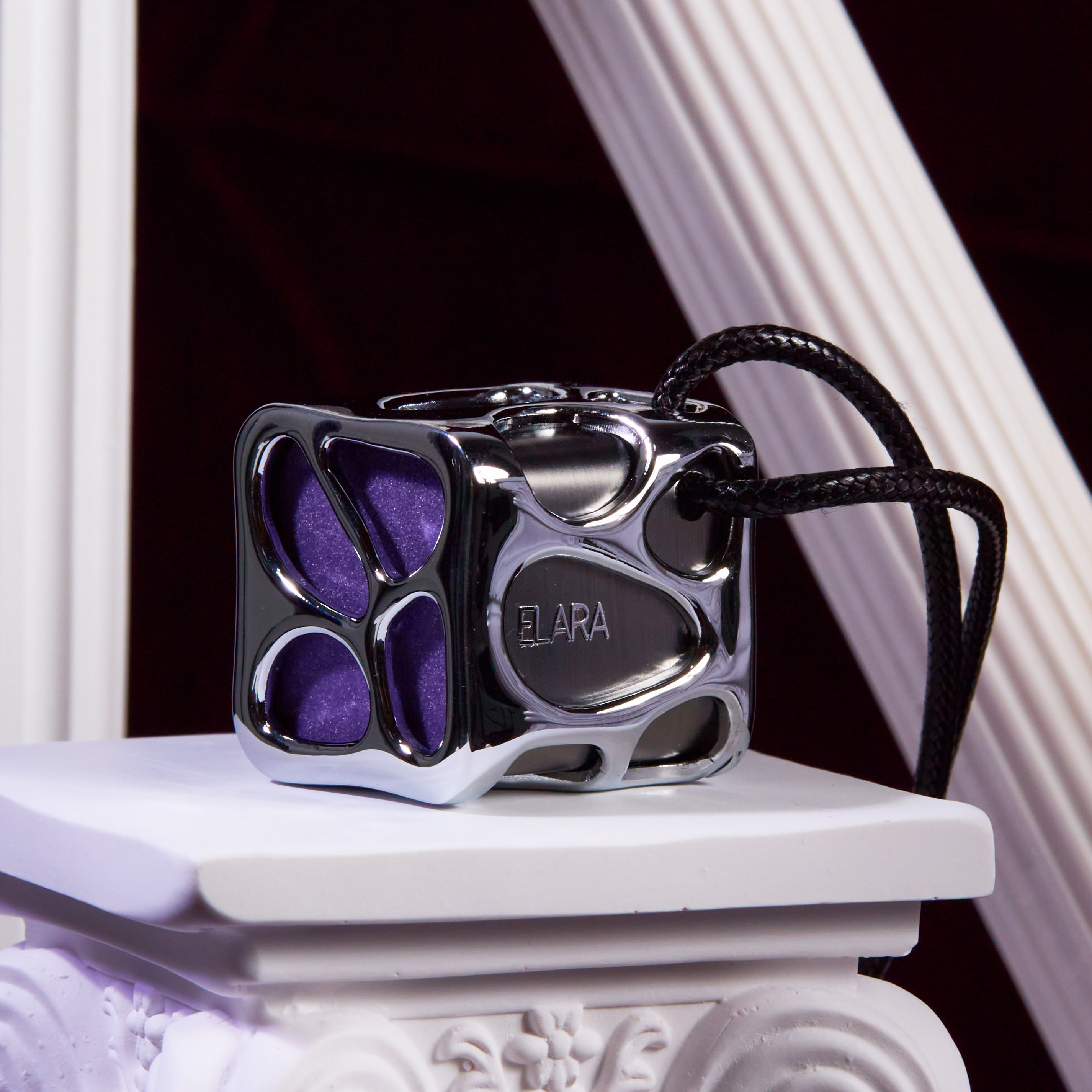 這款鏤空立方金屬香氛作品,靈感來自月神賽勒涅與潮汐奧秘。其結構如容器般凝聚月光意象,透過鏤空窺見香氛塊色彩,象徵光影靜謐。月神方塊,以香氣點亮感官,為車廂注入超越塵囂的清雅與理性,探索內在秩序。